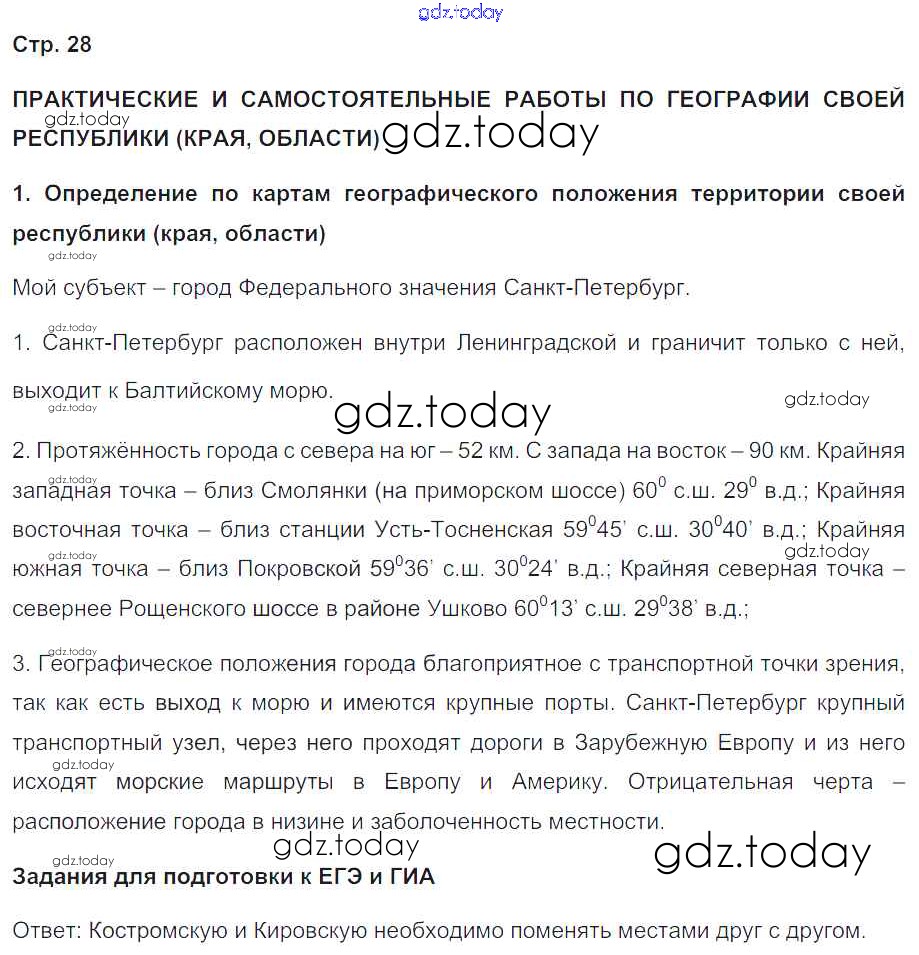 На страницах сайта gdz.today вы найдете учебный и вспомогательный материал, направленный на улучшения знаний школьной программы. ГДЗ - онлайн мир знаний Страницы (решение) 28 Рабочей тетради с контурными картами по Географии для 9 класса Сиротин Дрофа 2020