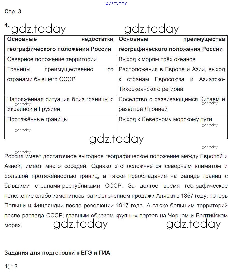 На страницах сайта gdz.today вы найдете учебный и вспомогательный материал, направленный на улучшения знаний школьной программы. ГДЗ - онлайн мир знаний Страницы (решение) 3 Рабочей тетради с контурными картами по Географии для 9 класса Сиротин Дрофа 2020