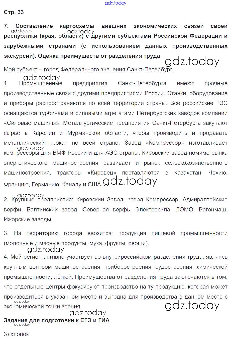 Ответы к Страницы (решение) 33 Рабочей тетради с контурными картами по Географии для 9 класса Сиротин Дрофа 2020