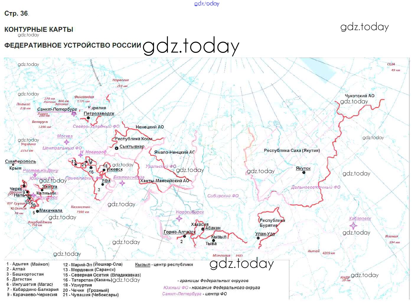На страницах сайта gdz.today вы найдете учебный и вспомогательный материал, направленный на улучшения знаний школьной программы. ГДЗ - онлайн мир знаний Страницы (решение) 36 Рабочей тетради с контурными картами по Географии для 9 класса Сиротин Дрофа 2020