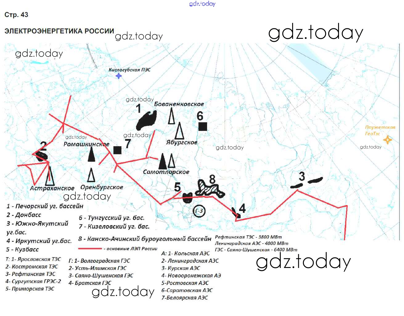Ответы к Страницы (решение) 43 Рабочей тетради с контурными картами по Географии для 9 класса Сиротин Дрофа 2020