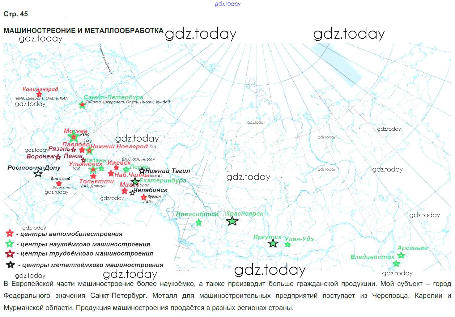 На страницах сайта gdz.today вы найдете учебный и вспомогательный материал, направленный на улучшения знаний школьной программы. ГДЗ - онлайн мир знаний Страницы (решение) 45 Рабочей тетради с контурными картами по Географии для 9 класса Сиротин Дрофа 2020