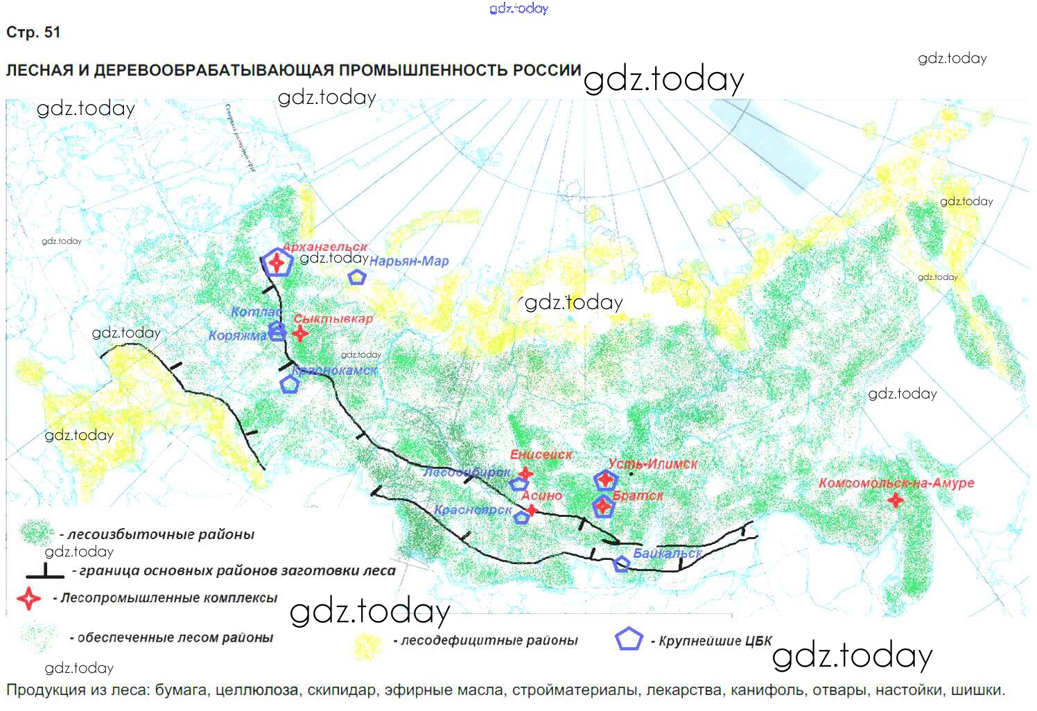 Ответы к Страницы (решение) 51 Рабочей тетради с контурными картами по Географии для 9 класса Сиротин Дрофа 2020