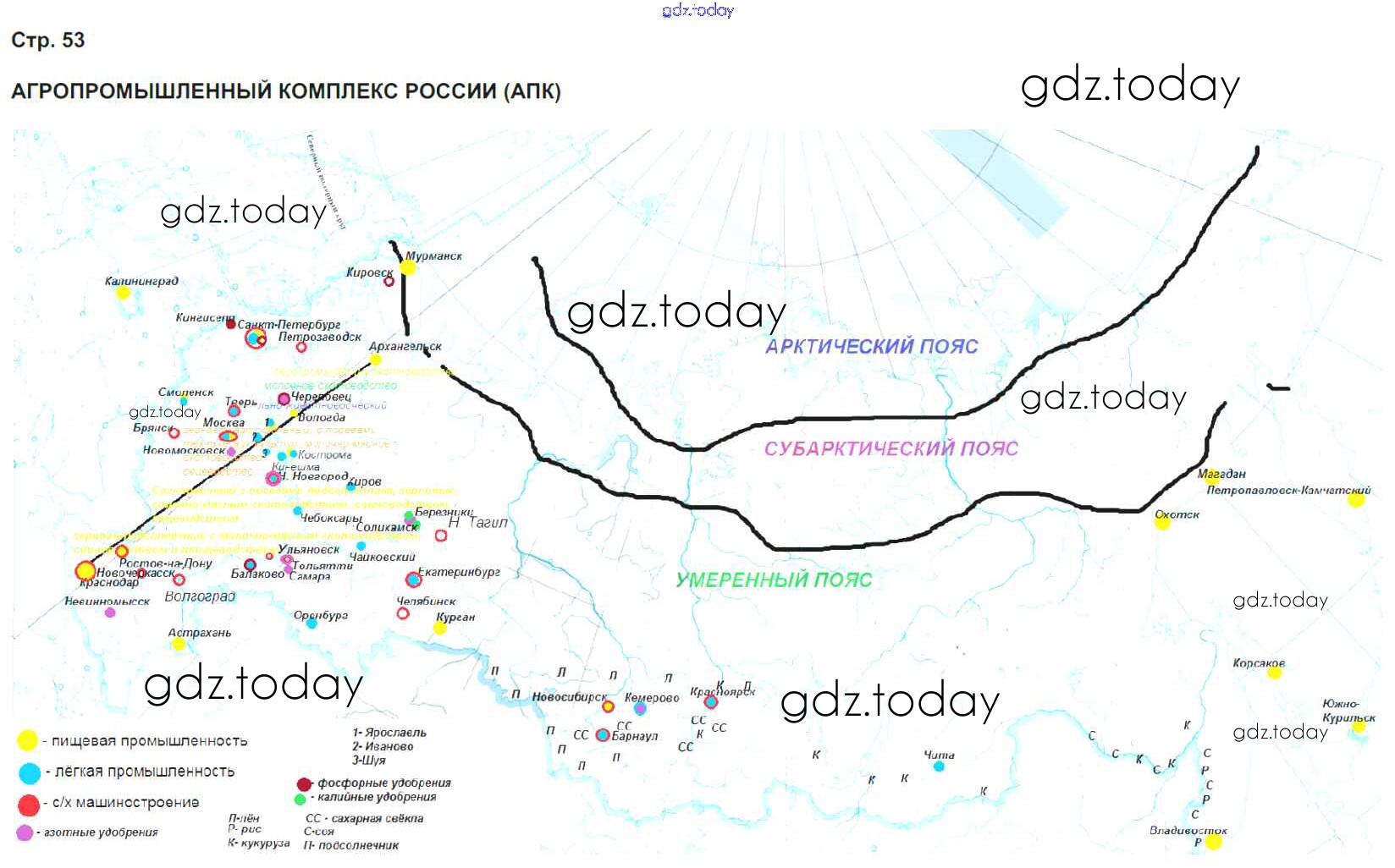На страницах сайта gdz.today вы найдете учебный и вспомогательный материал, направленный на улучшения знаний школьной программы. ГДЗ - онлайн мир знаний Страницы (решение) 53 Рабочей тетради с контурными картами по Географии для 9 класса Сиротин Дрофа 2020