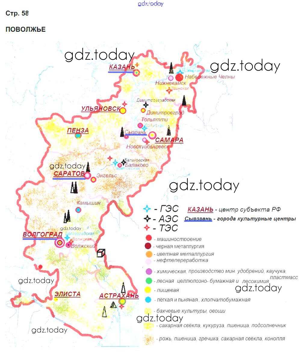 Ответы к Страницы (решение) 58 Рабочей тетради с контурными картами по Географии для 9 класса Сиротин Дрофа 2020