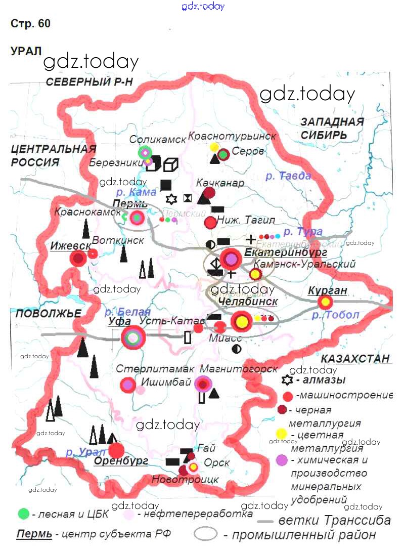Ответы к Страницы (решение) 60 Рабочей тетради с контурными картами по Географии для 9 класса Сиротин Дрофа 2020