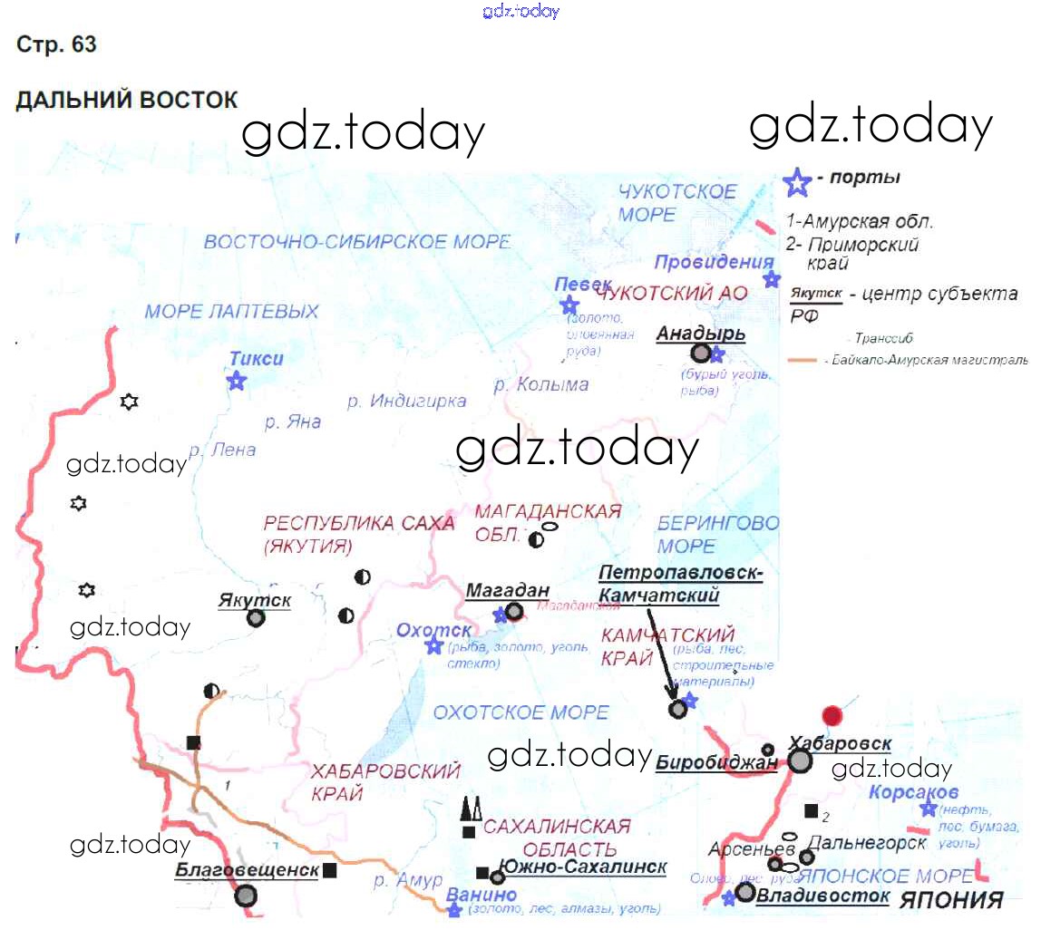 Ответы к Страницы (решение) 63 Рабочей тетради с контурными картами по Географии для 9 класса Сиротин Дрофа 2020