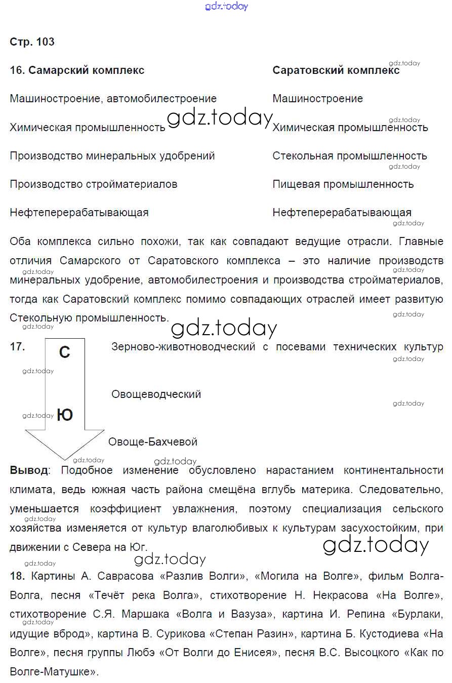 Ответы к Страницы (решение) 103 Рабочей тетради по Географии для 9 класса Дронов Дрофа Вертикаль 2020