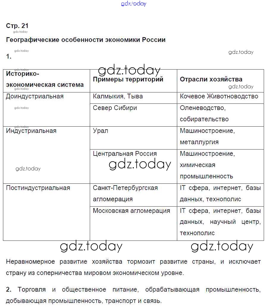 На страницах сайта gdz.today вы найдете учебный и вспомогательный материал, направленный на улучшения знаний школьной программы. ГДЗ - онлайн мир знаний Страницы (решение) 21 Рабочей тетради по Географии для 9 класса Дронов Дрофа Вертикаль 2020