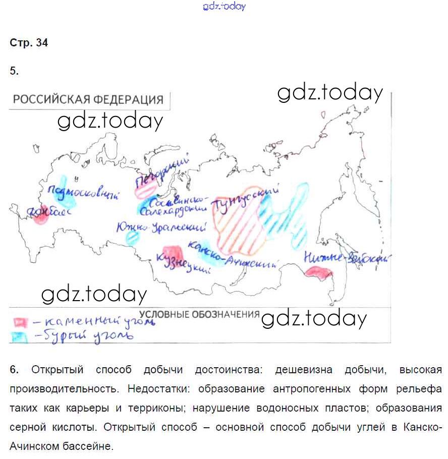 Ответы к Страницы (решение) 34 Рабочей тетради по Географии для 9 класса Дронов Дрофа Вертикаль 2020