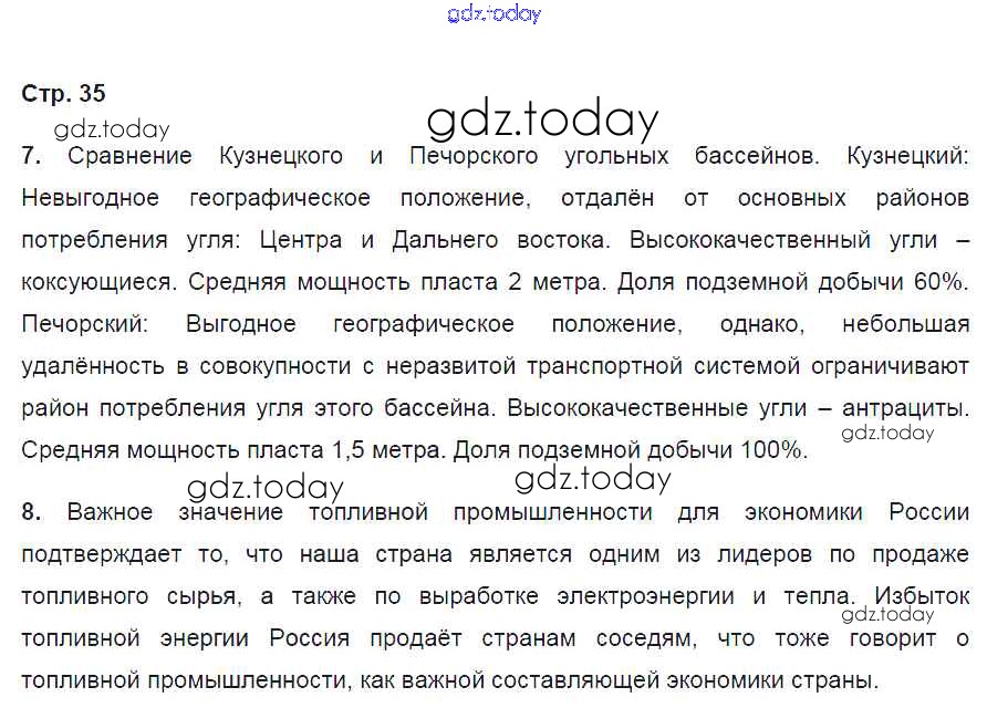 Ответы к Страницы (решение) 35 Рабочей тетради по Географии для 9 класса Дронов Дрофа Вертикаль 2020