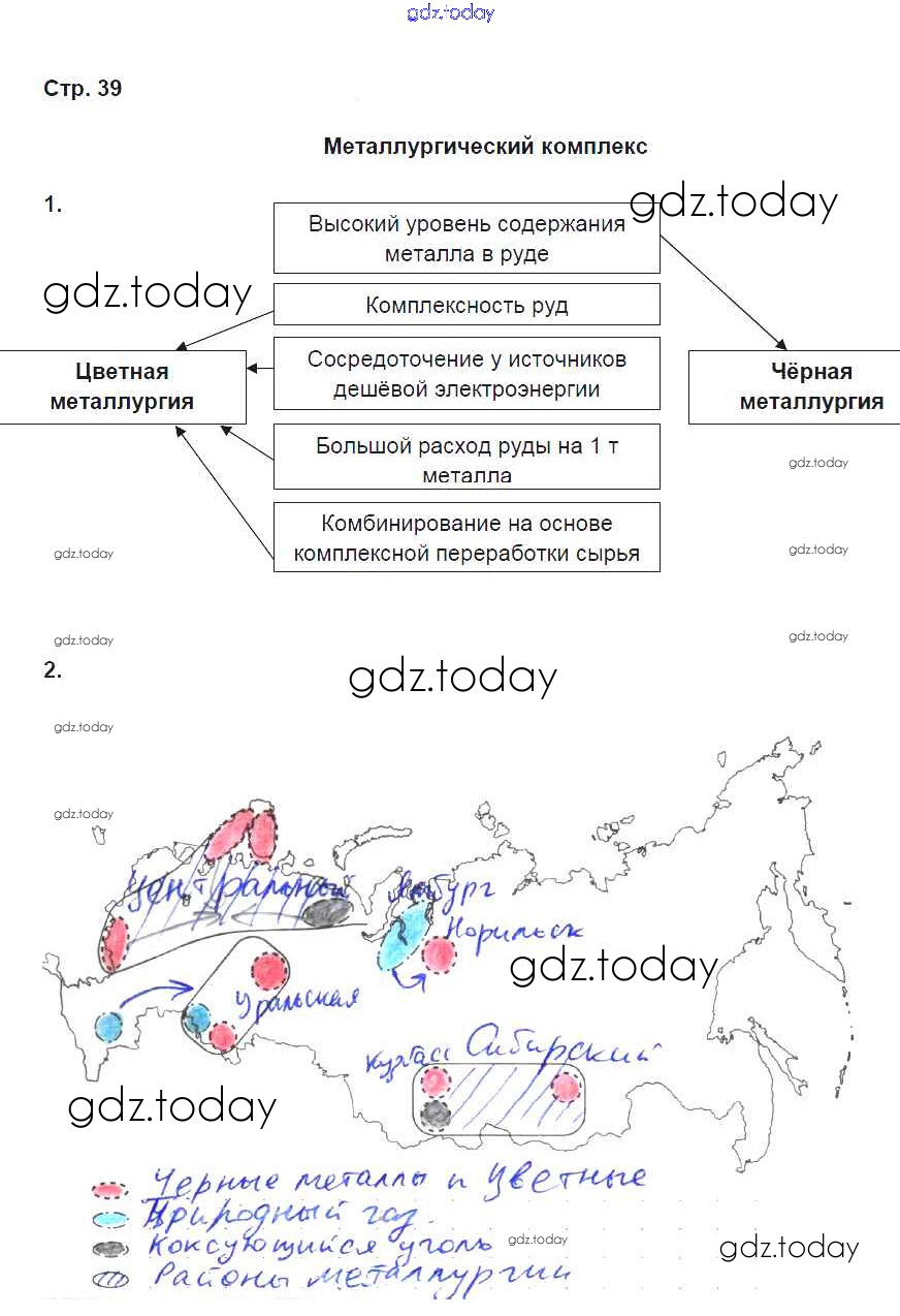 Ответы к Страницы (решение) 39 Рабочей тетради по Географии для 9 класса Дронов Дрофа Вертикаль 2020