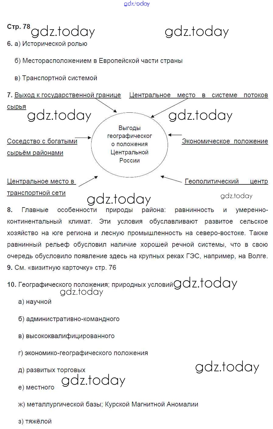 Ответы к Страницы (решение) 78 Рабочей тетради по Географии для 9 класса Дронов Дрофа Вертикаль 2020