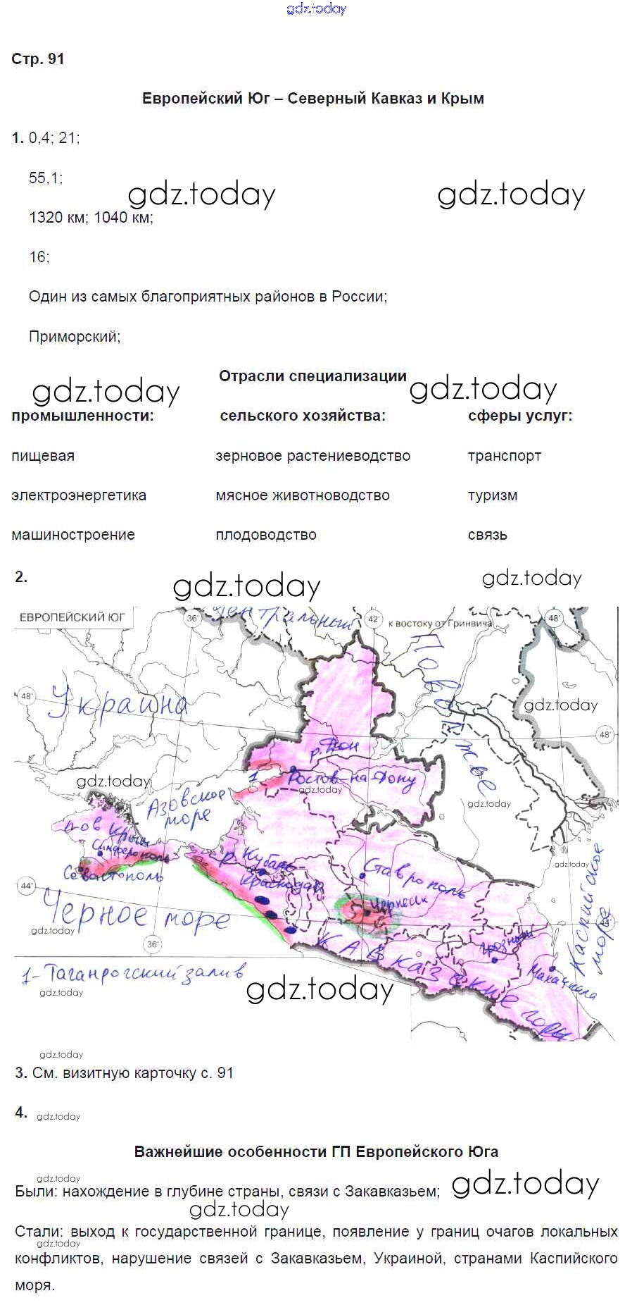 На страницах сайта gdz.today вы найдете учебный и вспомогательный материал, направленный на улучшения знаний школьной программы. ГДЗ - онлайн мир знаний Страницы (решение) 91 Рабочей тетради по Географии для 9 класса Дронов Дрофа Вертикаль 2020