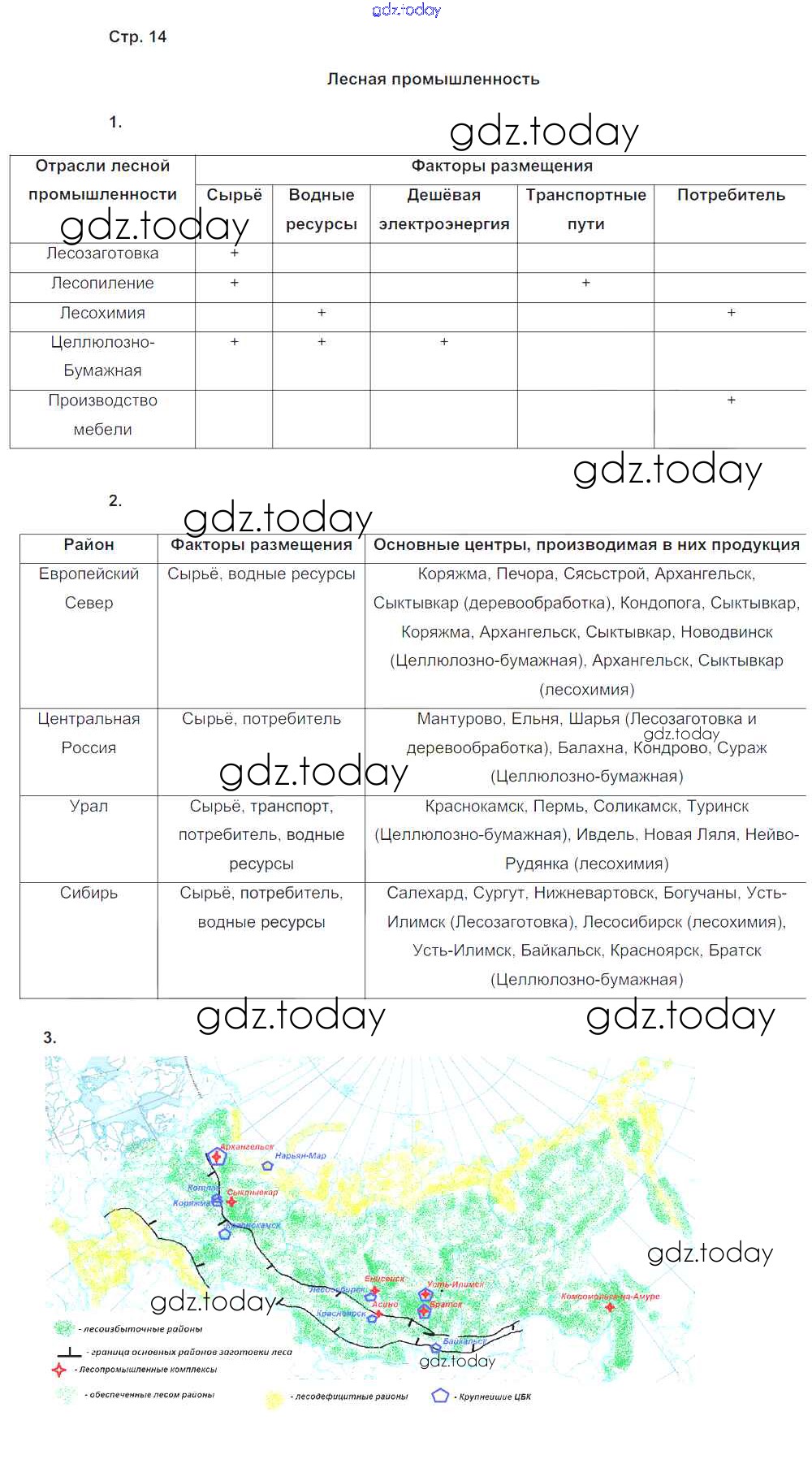 Ответы к Страницы (решение) 14 Рабочей тетради с контурными картами по Географии для 9 класса Баринова, Суслов Экзамен УМК 2019