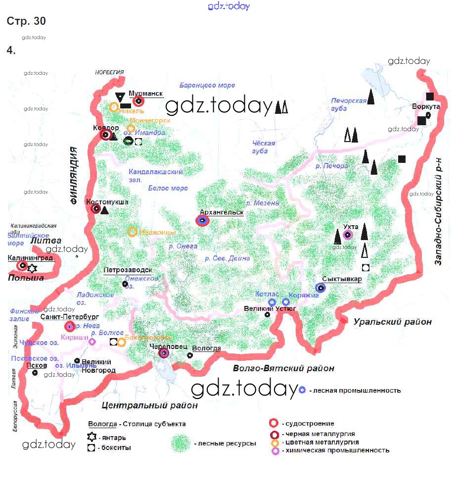 Ответы к Страницы (решение) 30 Рабочей тетради с контурными картами по Географии для 9 класса Баринова, Суслов Экзамен УМК 2019