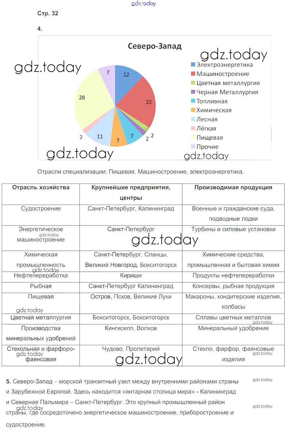 Ответы к Страницы (решение) 32 Рабочей тетради с контурными картами по Географии для 9 класса Баринова, Суслов Экзамен УМК 2019