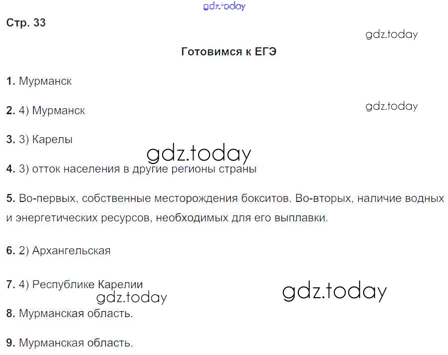 Ответы к Страницы (решение) 33 Рабочей тетради с контурными картами по Географии для 9 класса Баринова, Суслов Экзамен УМК 2019