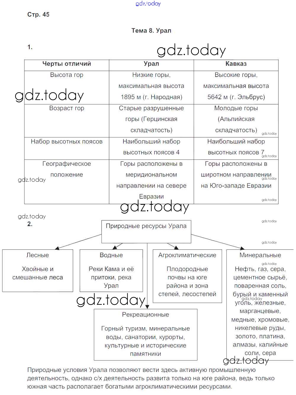 Ответы к Страницы (решение) 45 Рабочей тетради с контурными картами по Географии для 9 класса Баринова, Суслов Экзамен УМК 2019