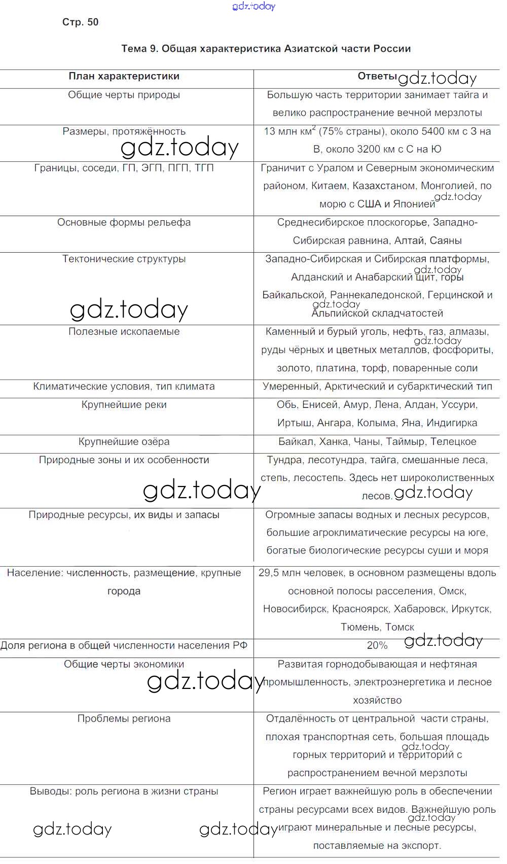 Ответы к Страницы (решение) 50 Рабочей тетради с контурными картами по Географии для 9 класса Баринова, Суслов Экзамен УМК 2019
