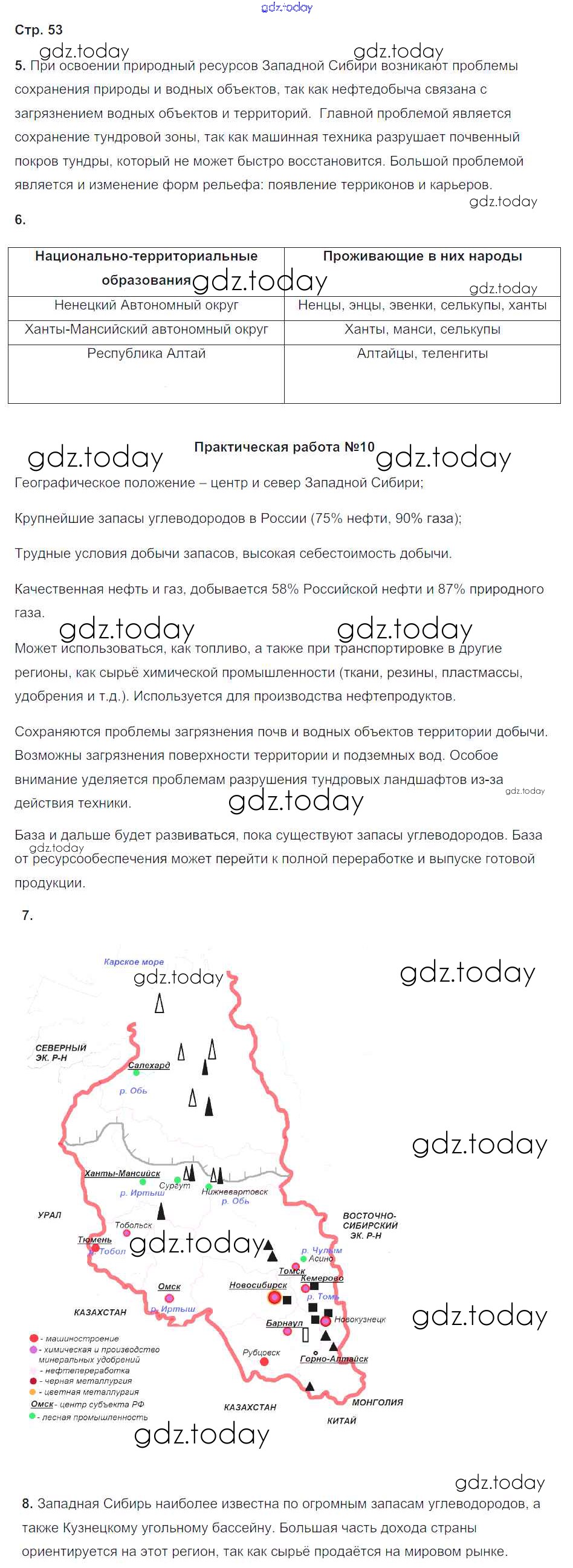 Ответы к Страницы (решение) 53 Рабочей тетради с контурными картами по Географии для 9 класса Баринова, Суслов Экзамен УМК 2019