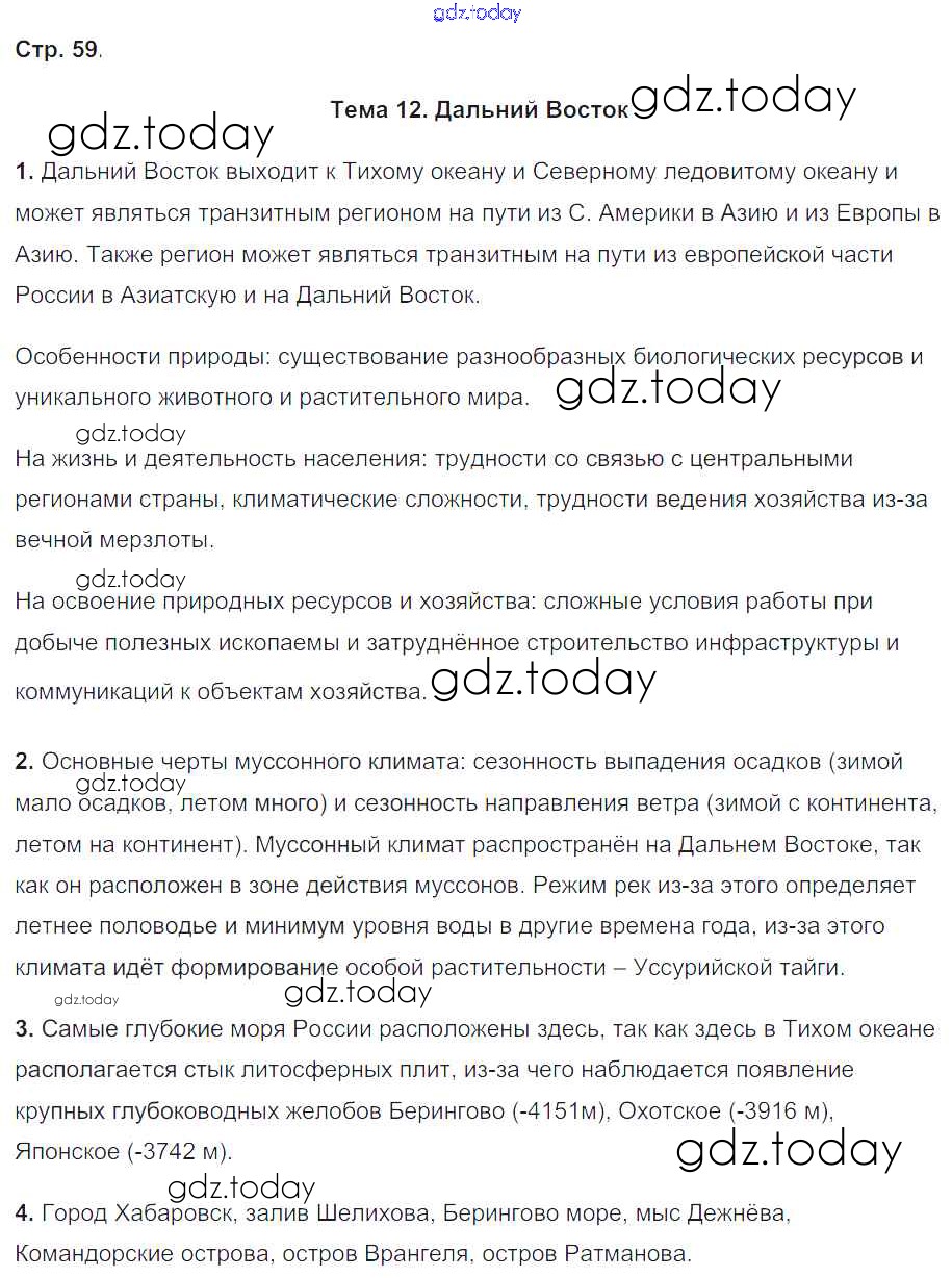 Ответы к Страницы (решение) 59 Рабочей тетради с контурными картами по Географии для 9 класса Баринова, Суслов Экзамен УМК 2019