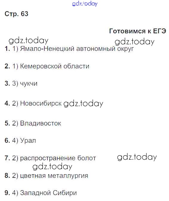 Ответы к Страницы (решение) 63 Рабочей тетради с контурными картами по Географии для 9 класса Баринова, Суслов Экзамен УМК 2019