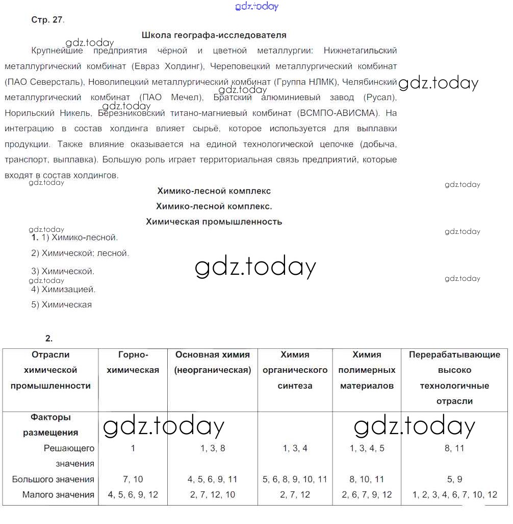 На страницах сайта gdz.today вы найдете учебный и вспомогательный материал, направленный на улучшения знаний школьной программы. ГДЗ - онлайн мир знаний Решение к части 1. Страницы 27 Рабочей тетради по Географии для 9 класса Таможняя, Толкунова Вентана-граф Алгоритм успеха 2017