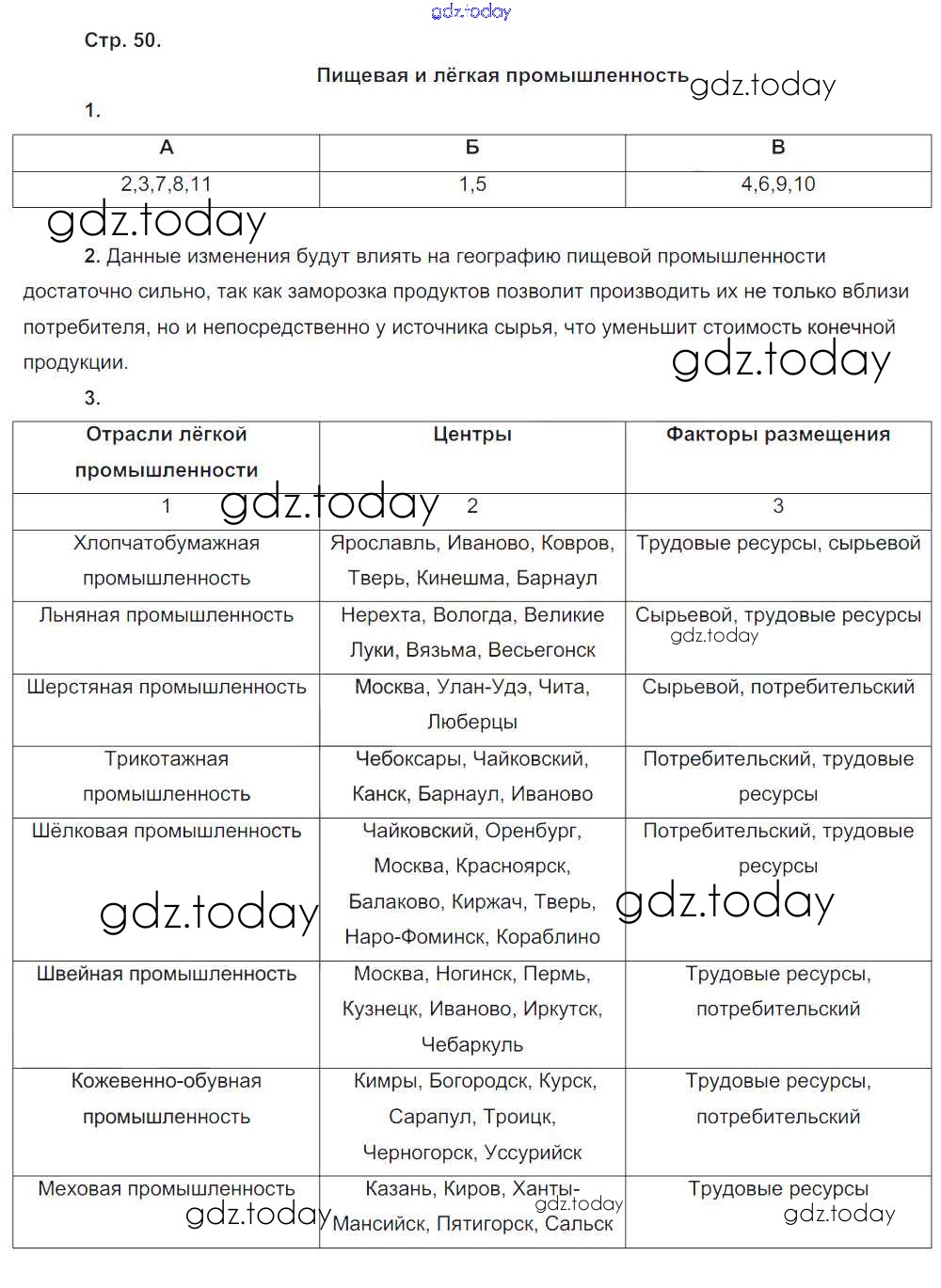 На страницах сайта gdz.today вы найдете учебный и вспомогательный материал, направленный на улучшения знаний школьной программы. ГДЗ - онлайн мир знаний Решение к части 1. Страницы 50 Рабочей тетради по Географии для 9 класса Таможняя, Толкунова Вентана-граф Алгоритм успеха 2017