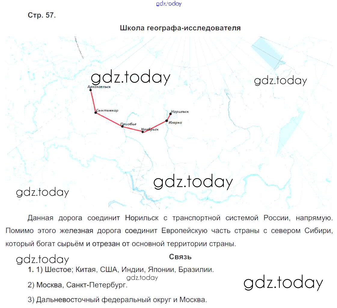 На страницах сайта gdz.today вы найдете учебный и вспомогательный материал, направленный на улучшения знаний школьной программы. ГДЗ - онлайн мир знаний Решение к части 1. Страницы 57 Рабочей тетради по Географии для 9 класса Таможняя, Толкунова Вентана-граф Алгоритм успеха 2017