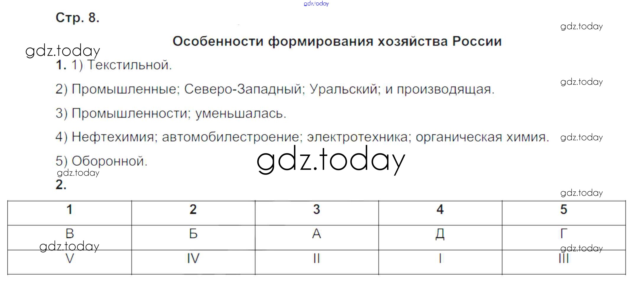 На страницах сайта gdz.today вы найдете учебный и вспомогательный материал, направленный на улучшения знаний школьной программы. ГДЗ - онлайн мир знаний Решение к части 1. Страницы 8 Рабочей тетради по Географии для 9 класса Таможняя, Толкунова Вентана-граф Алгоритм успеха 2017