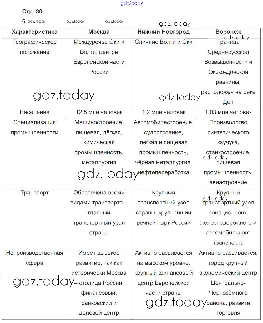 На страницах сайта gdz.today вы найдете учебный и вспомогательный материал, направленный на улучшения знаний школьной программы. ГДЗ - онлайн мир знаний Решение к части 1. Страницы 80 Рабочей тетради по Географии для 9 класса Таможняя, Толкунова Вентана-граф Алгоритм успеха 2017