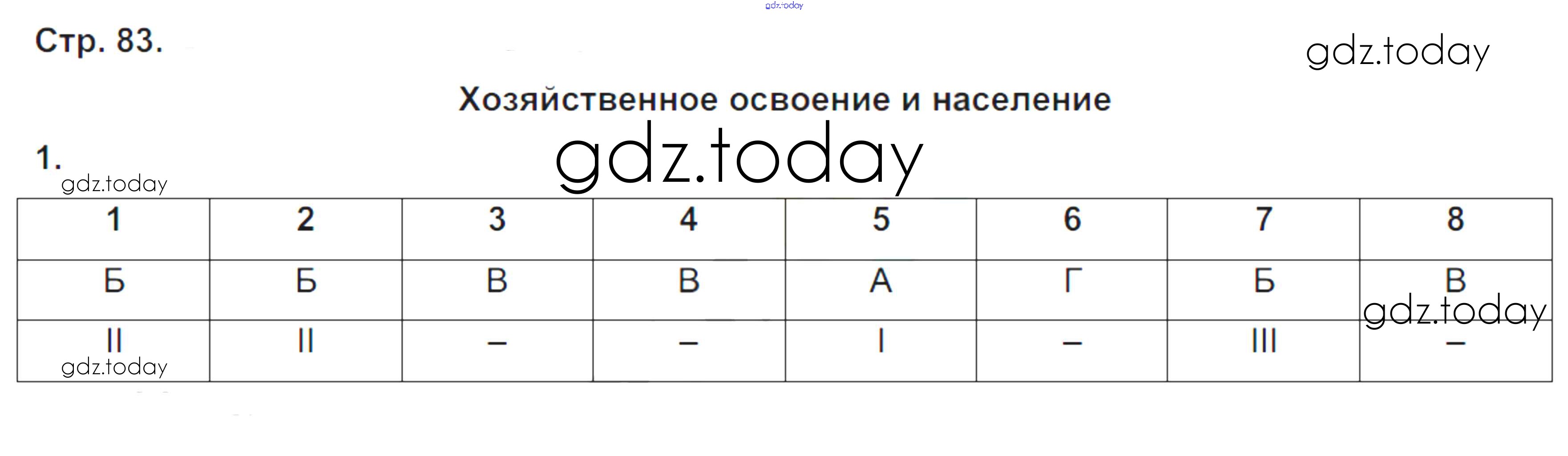 На страницах сайта gdz.today вы найдете учебный и вспомогательный материал, направленный на улучшения знаний школьной программы. ГДЗ - онлайн мир знаний Решение к части 1. Страницы 83 Рабочей тетради по Географии для 9 класса Таможняя, Толкунова Вентана-граф Алгоритм успеха 2017