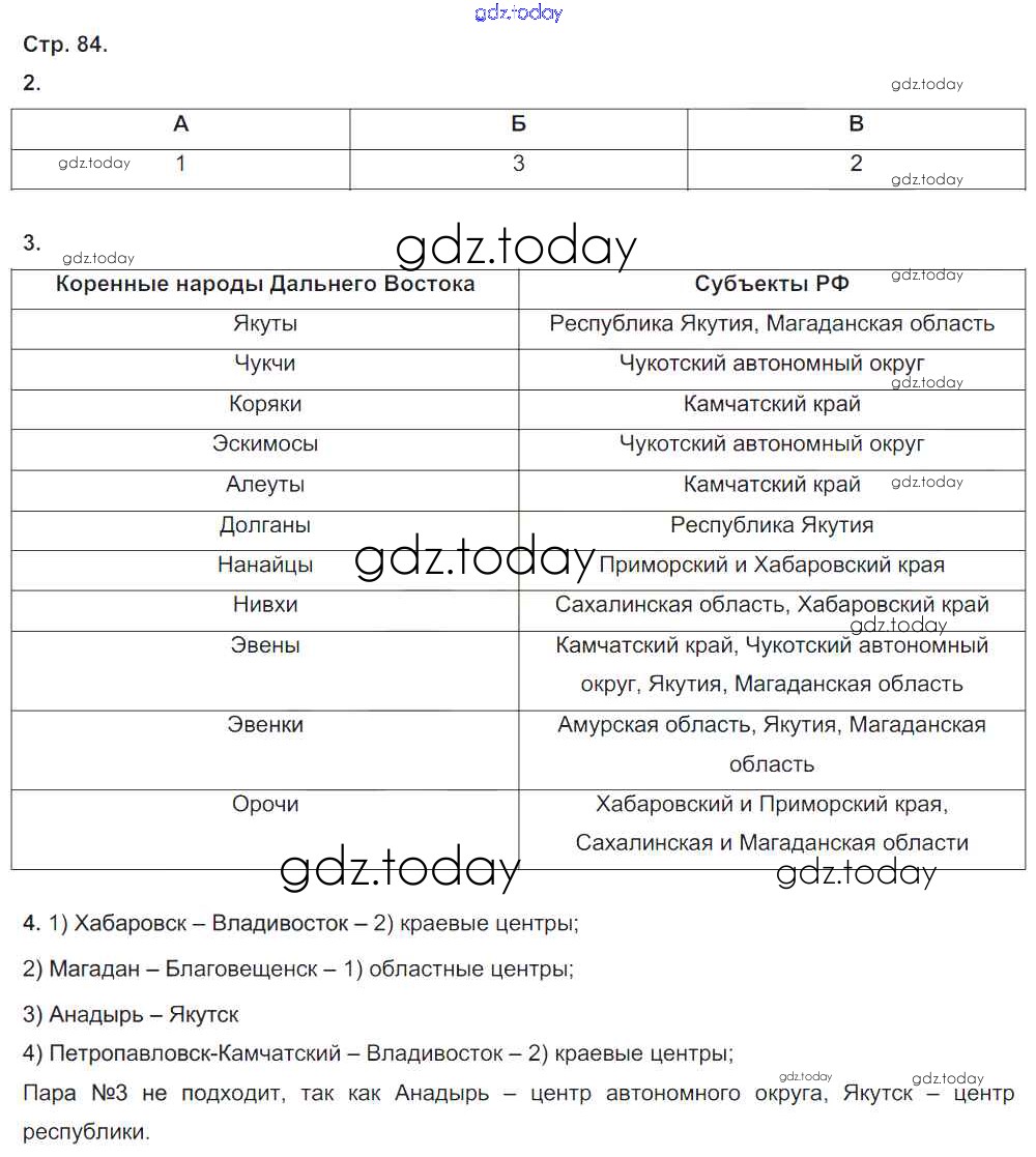 На страницах сайта gdz.today вы найдете учебный и вспомогательный материал, направленный на улучшения знаний школьной программы. ГДЗ - онлайн мир знаний Решение к части 1. Страницы 84 Рабочей тетради по Географии для 9 класса Таможняя, Толкунова Вентана-граф Алгоритм успеха 2017