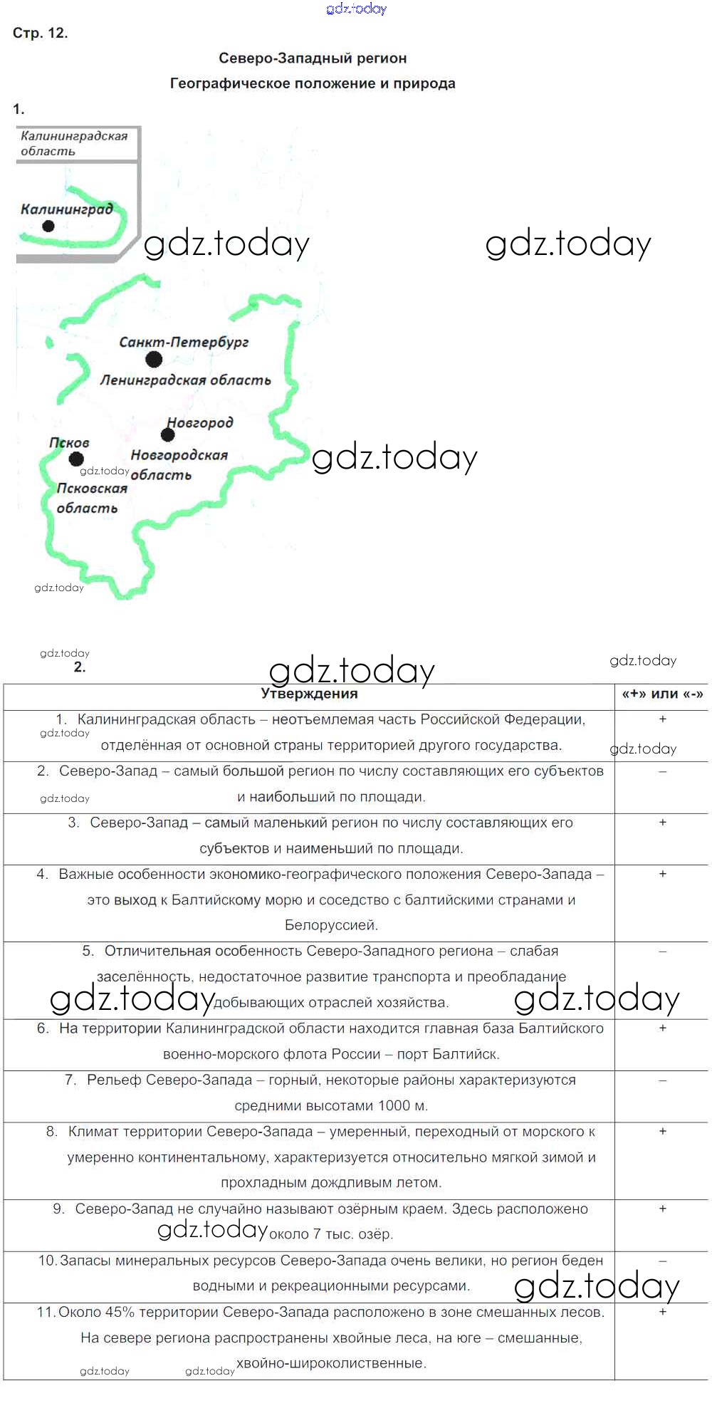 На страницах сайта gdz.today вы найдете учебный и вспомогательный материал, направленный на улучшения знаний школьной программы. ГДЗ - онлайн мир знаний Решение к части 2. Страницы 12 Рабочей тетради по Географии для 9 класса Таможняя, Толкунова Вентана-граф Алгоритм успеха 2017