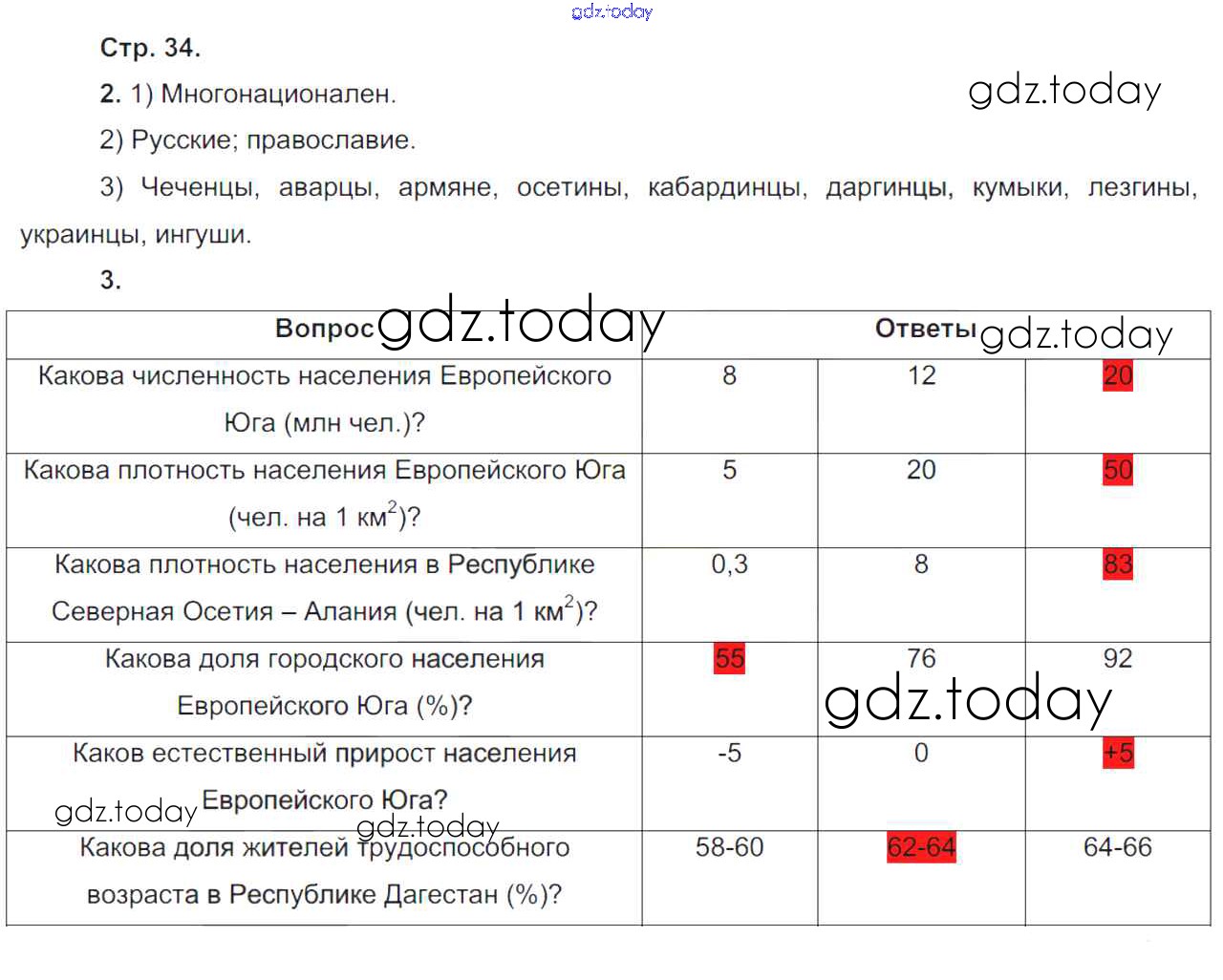 На страницах сайта gdz.today вы найдете учебный и вспомогательный материал, направленный на улучшения знаний школьной программы. ГДЗ - онлайн мир знаний Решение к части 2. Страницы 34 Рабочей тетради по Географии для 9 класса Таможняя, Толкунова Вентана-граф Алгоритм успеха 2017