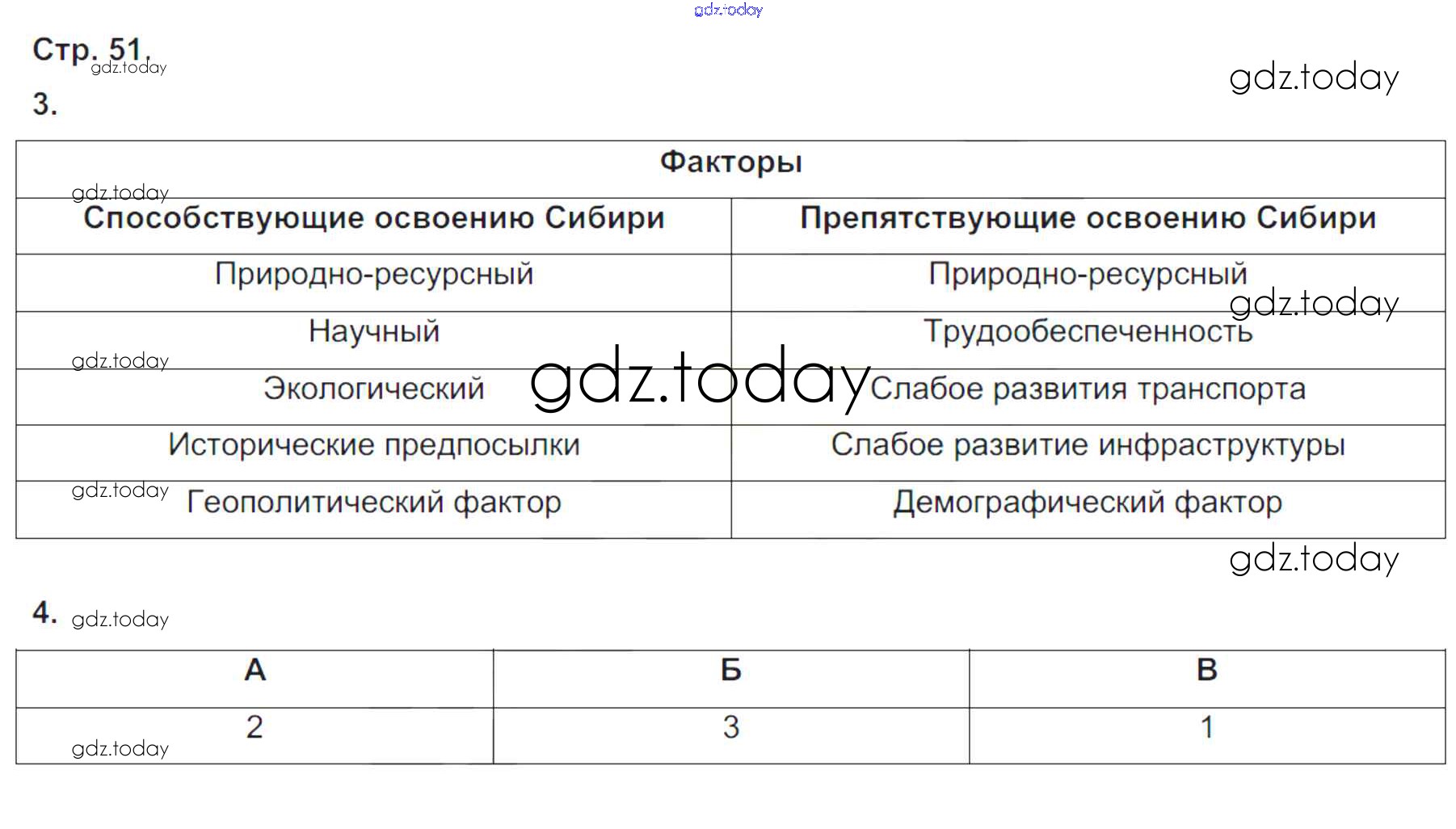 На страницах сайта gdz.today вы найдете учебный и вспомогательный материал, направленный на улучшения знаний школьной программы. ГДЗ - онлайн мир знаний Решение к части 2. Страницы 51 Рабочей тетради по Географии для 9 класса Таможняя, Толкунова Вентана-граф Алгоритм успеха 2017