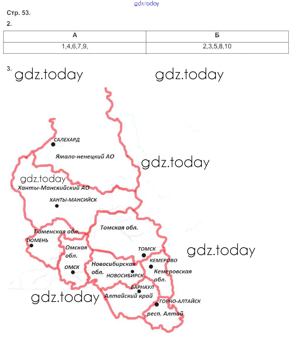 На страницах сайта gdz.today вы найдете учебный и вспомогательный материал, направленный на улучшения знаний школьной программы. ГДЗ - онлайн мир знаний Решение к части 2. Страницы 53 Рабочей тетради по Географии для 9 класса Таможняя, Толкунова Вентана-граф Алгоритм успеха 2017