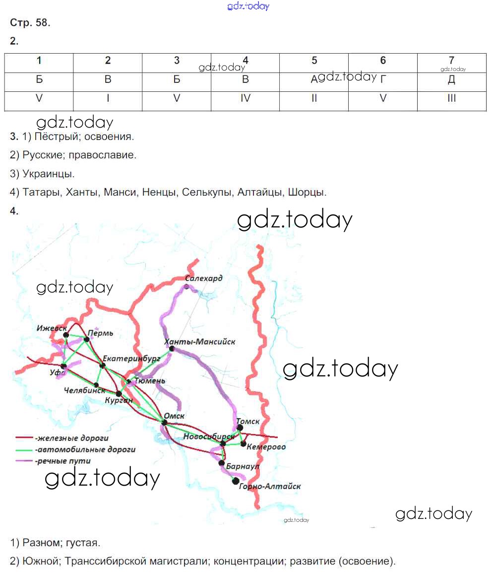 На страницах сайта gdz.today вы найдете учебный и вспомогательный материал, направленный на улучшения знаний школьной программы. ГДЗ - онлайн мир знаний Решение к части 2. Страницы 58 Рабочей тетради по Географии для 9 класса Таможняя, Толкунова Вентана-граф Алгоритм успеха 2017