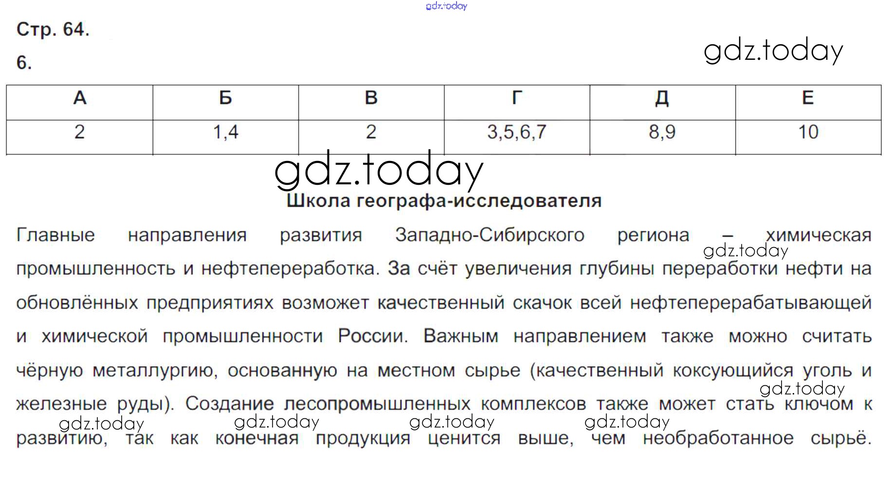 На страницах сайта gdz.today вы найдете учебный и вспомогательный материал, направленный на улучшения знаний школьной программы. ГДЗ - онлайн мир знаний Решение к части 2. Страницы 64 Рабочей тетради по Географии для 9 класса Таможняя, Толкунова Вентана-граф Алгоритм успеха 2017