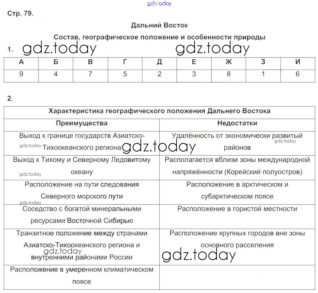На страницах сайта gdz.today вы найдете учебный и вспомогательный материал, направленный на улучшения знаний школьной программы. ГДЗ - онлайн мир знаний Решение к части 2. Страницы 79 Рабочей тетради по Географии для 9 класса Таможняя, Толкунова Вентана-граф Алгоритм успеха 2017