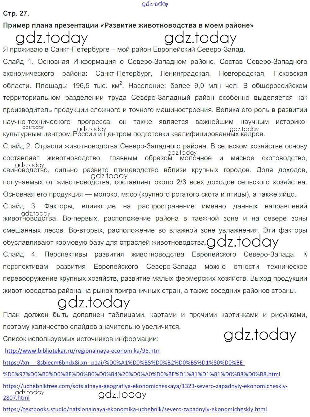 На страницах сайта gdz.today вы найдете учебный и вспомогательный материал, направленный на улучшения знаний школьной программы. ГДЗ - онлайн мир знаний Страницы (решение) 27 Тетради-практикуму по Географии для 9 класса Ольховая, Протасова Просвещение Сферы 2016