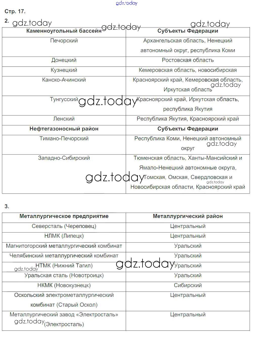 Ответы к Решение к главе 1. Хозяйство России стр.17 Тетради-тренажеру по Географии для 9 класса Ходова, Ольховая Просвещение Сферы 2016