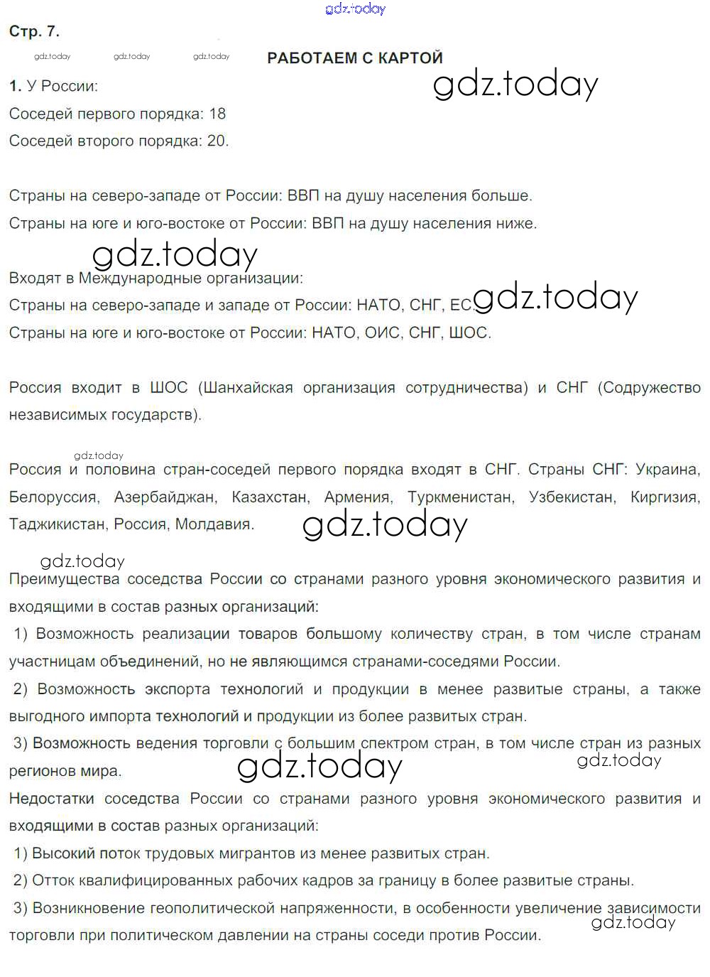 На страницах сайта gdz.today вы найдете учебный и вспомогательный материал, направленный на улучшения знаний школьной программы. ГДЗ - онлайн мир знаний Решение к главе 1. Хозяйство России стр.7 Тетради-тренажеру по Географии для 9 класса Ходова, Ольховая Просвещение Сферы 2016