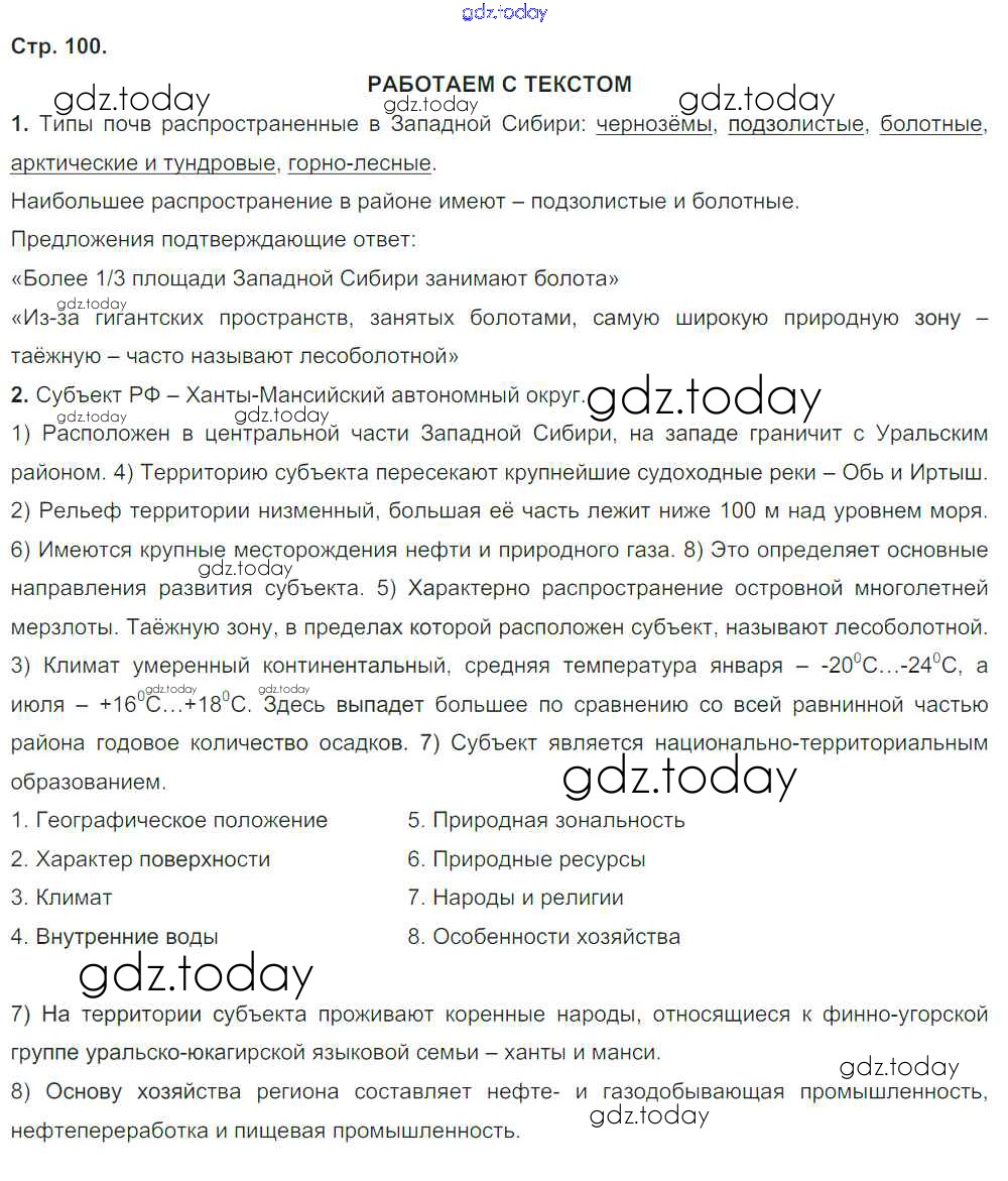 На страницах сайта gdz.today вы найдете учебный и вспомогательный материал, направленный на улучшения знаний школьной программы. ГДЗ - онлайн мир знаний Решение к главе 2. Районы России стр.100 Тетради-тренажеру по Географии для 9 класса Ходова, Ольховая Просвещение Сферы 2016