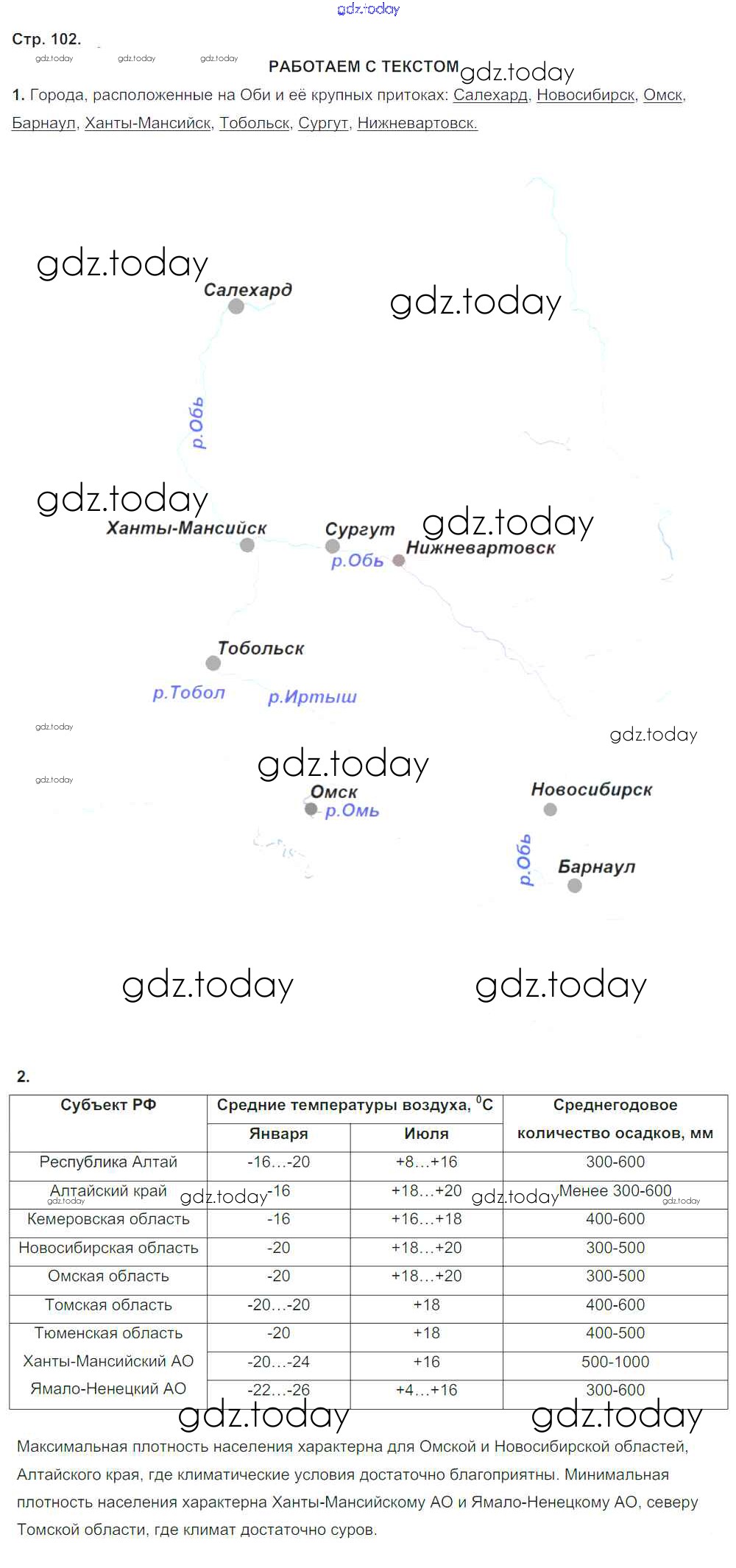 На страницах сайта gdz.today вы найдете учебный и вспомогательный материал, направленный на улучшения знаний школьной программы. ГДЗ - онлайн мир знаний Решение к главе 2. Районы России стр.102 Тетради-тренажеру по Географии для 9 класса Ходова, Ольховая Просвещение Сферы 2016