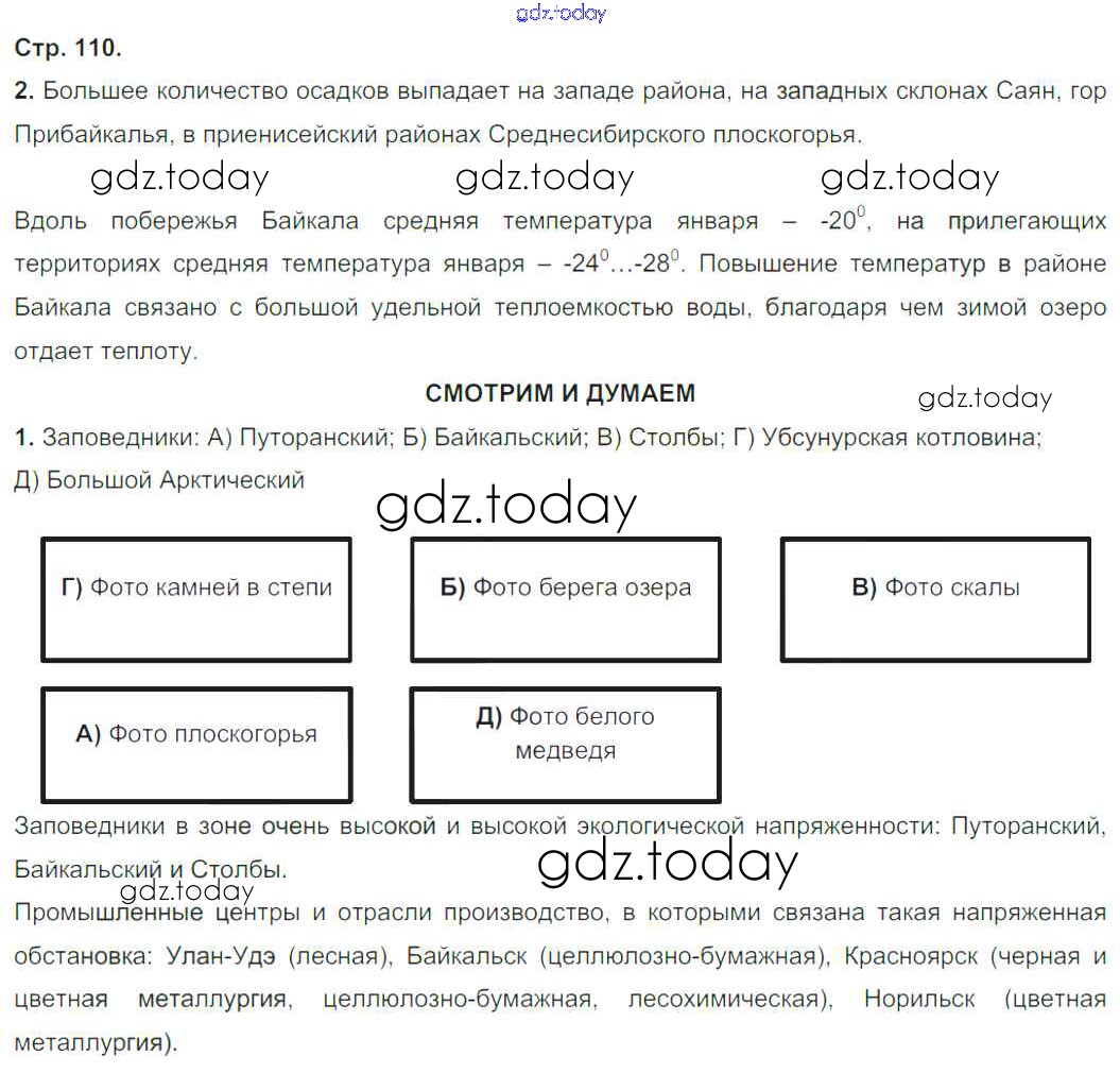 На страницах сайта gdz.today вы найдете учебный и вспомогательный материал, направленный на улучшения знаний школьной программы. ГДЗ - онлайн мир знаний Решение к главе 2. Районы России стр.110 Тетради-тренажеру по Географии для 9 класса Ходова, Ольховая Просвещение Сферы 2016