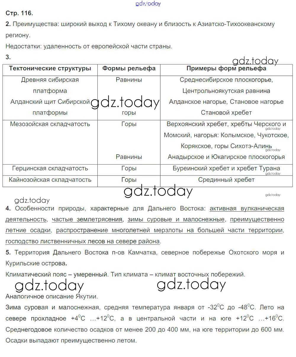На страницах сайта gdz.today вы найдете учебный и вспомогательный материал, направленный на улучшения знаний школьной программы. ГДЗ - онлайн мир знаний Решение к главе 2. Районы России стр.116 Тетради-тренажеру по Географии для 9 класса Ходова, Ольховая Просвещение Сферы 2016