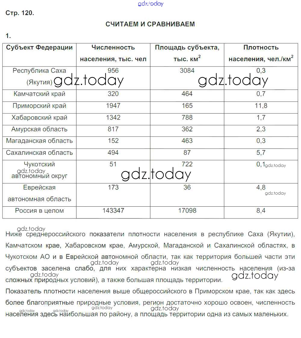 На страницах сайта gdz.today вы найдете учебный и вспомогательный материал, направленный на улучшения знаний школьной программы. ГДЗ - онлайн мир знаний Решение к главе 2. Районы России стр.120 Тетради-тренажеру по Географии для 9 класса Ходова, Ольховая Просвещение Сферы 2016