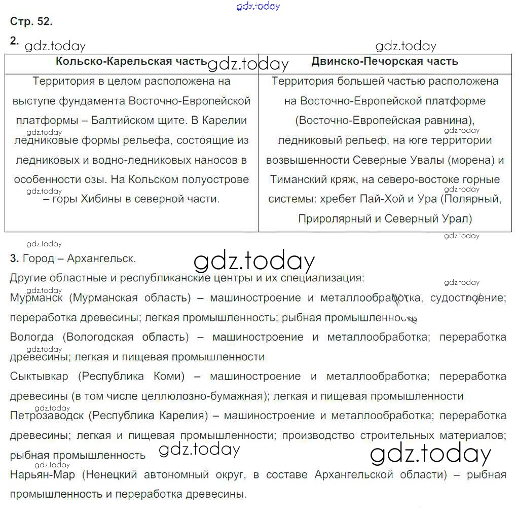 На страницах сайта gdz.today вы найдете учебный и вспомогательный материал, направленный на улучшения знаний школьной программы. ГДЗ - онлайн мир знаний Решение к главе 2. Районы России стр.52 Тетради-тренажеру по Географии для 9 класса Ходова, Ольховая Просвещение Сферы 2016